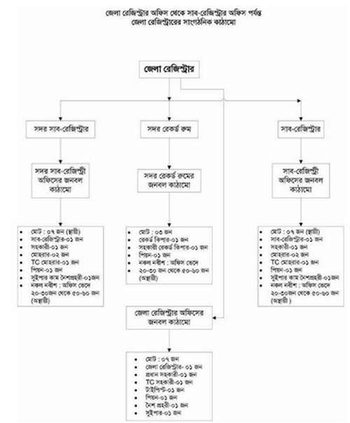 সাব-রেজিস্টার কার্যালয়ের সাংগঠনিক কাঠামো নিম্নরূপ ঃ